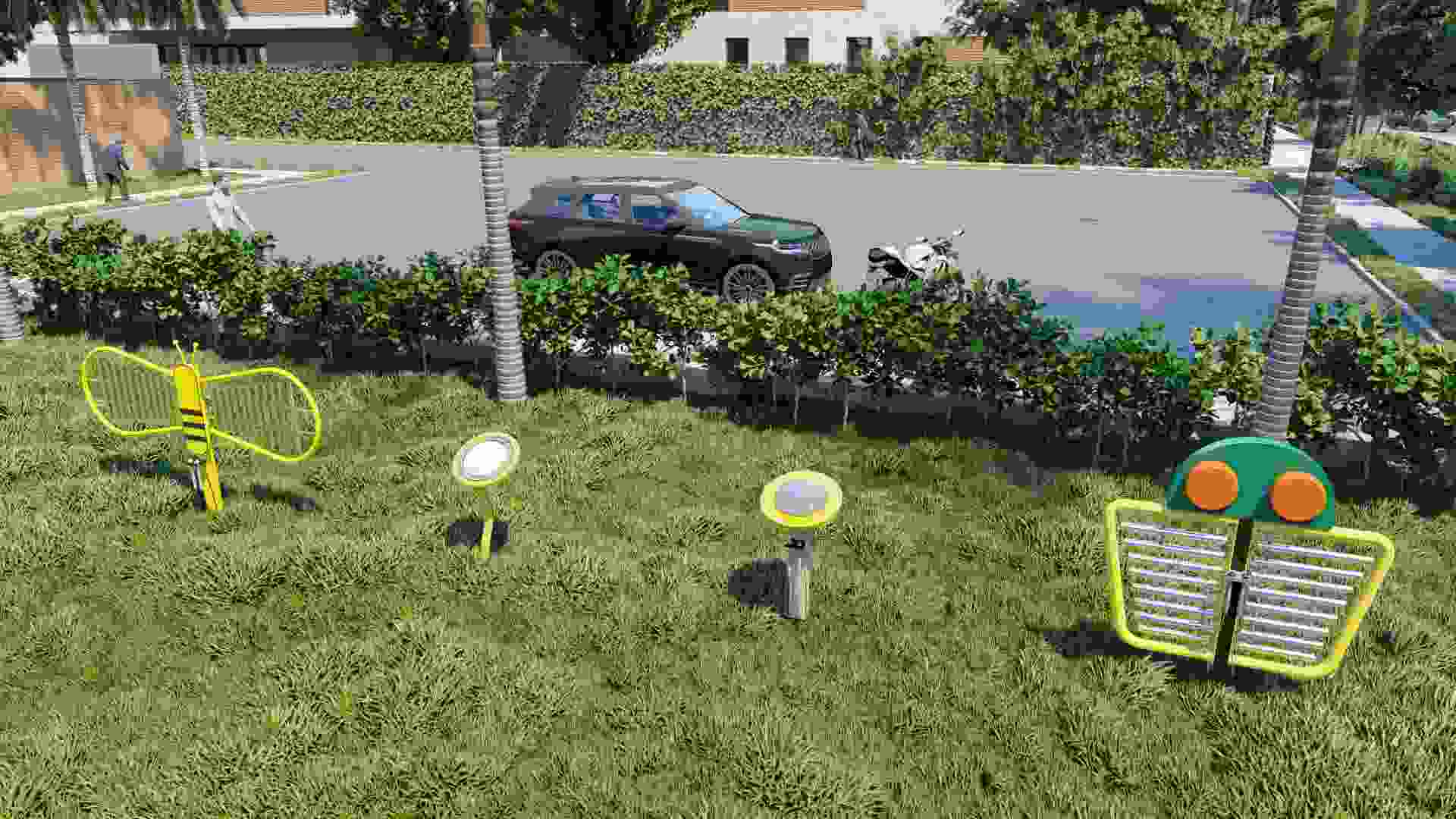 Ko tenei taputapu pepeke waho e whakaatu ana i te hihiri mai i te tino ataahua me te takaro "ko te whakahiato i nga taonga o te ao, me te mahi i nga taonga toi. He mea tika mo nga ahuatanga rereke penei i nga park, hapori, me nga puni tuuruhi ahurea.