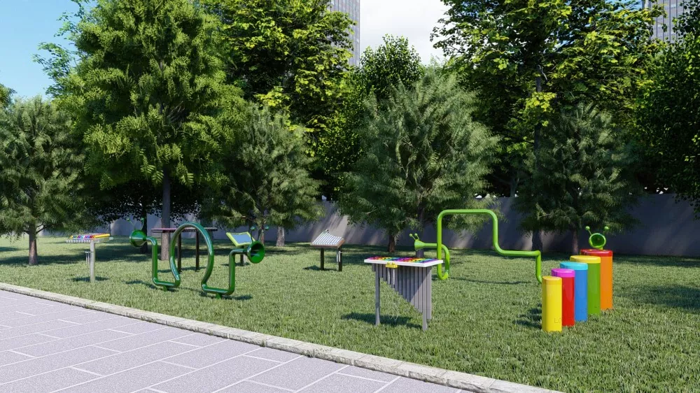 Ko tenei papa tākaro e korero ana i te putorino kowiri tira e rua nga kokonga o nga waahanga rereke, kia waatea ai mo nga tamariki rereke. I hangaia te waewae waewae hei whakaohooho i te whakarongo me te awhina i nga tamariki ki te mohio ki te hononga o te hononga o te haahi. Ka taea e nga rauemi ātete te whakarite kia whakamahia te whakamahi i waho. Na tona ngawari ki te whakaurunga me te tiaki, he tino pai mo nga pokapū tiaki mo te ra, me etahi atu waahi o waho, o waho ranei o nga waahi takaro mo nga tamariki.