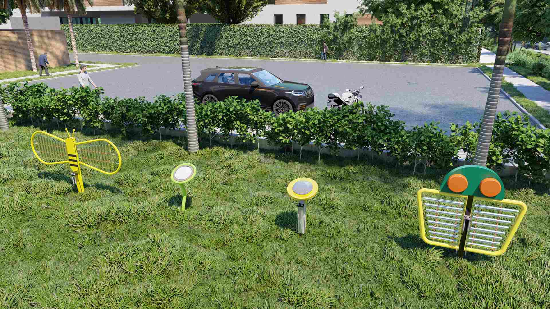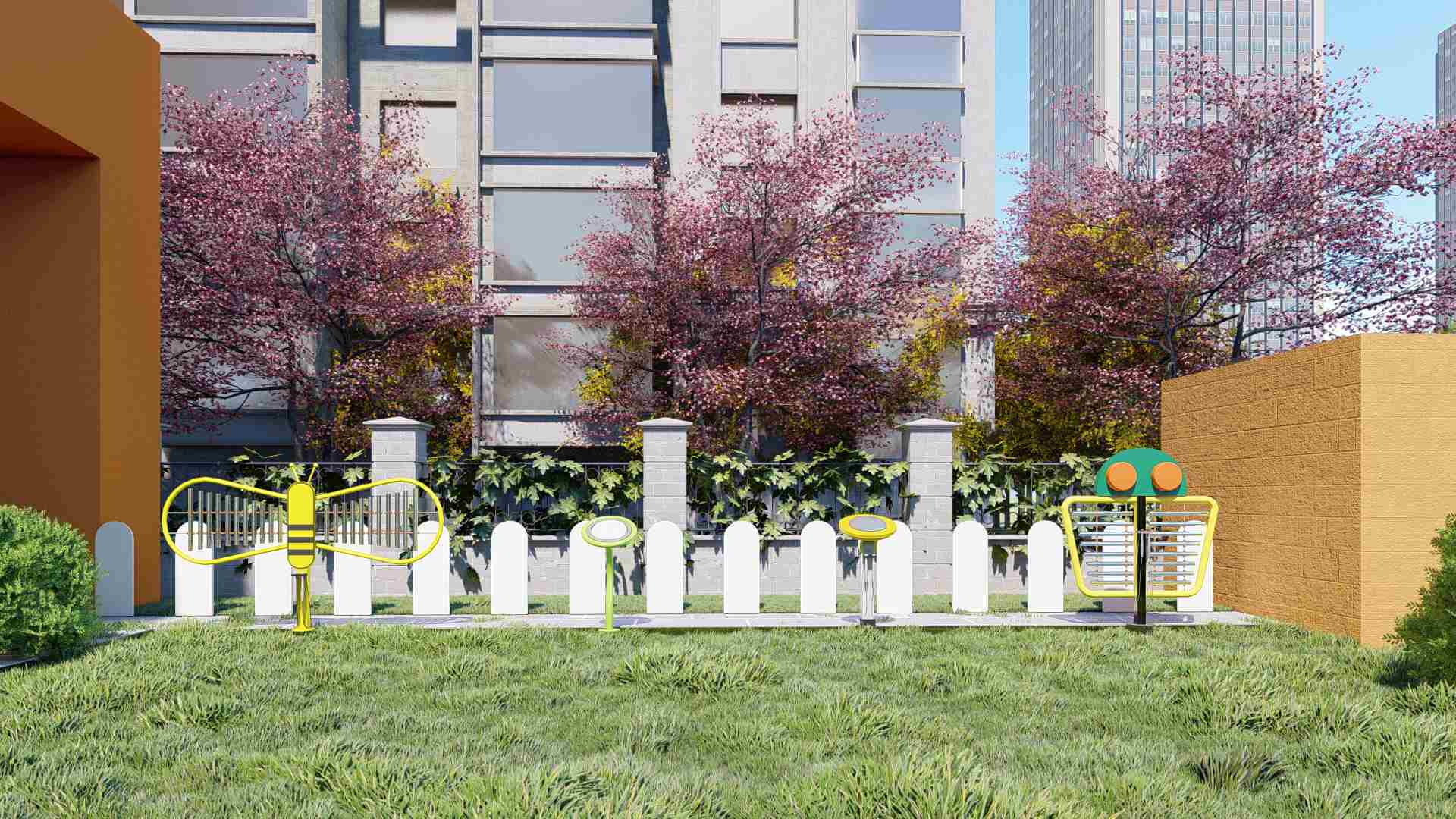 Mai i te tawhiti, ka rite ki te "putiputi" te pua i waho. Ko te kōpae kowhai kowhai kowhai he tino ora me te hopu kanohi, penei i te tae tino pai ki nga kanohi o nga tamariki; Ko nga pou rakau he kakano taiao me te mahana, he whakakotahi i te taiao o waho. He aha noa atu ko te mea ko te hama kua oti te hanga me te waahanga whakairi he ngawari ki te whakamahi, te tuku i nga tamariki katoa e hiahia ana ki te tirotiro i nga puoro. Ahakoa he papa hapori, ko nga papaa o te puni, he waahi tuuturu, ko enei momo hihiri me nga ahua ahurei ko te arotahi ki te taangata o waho, me te whakaoho i te hiahia o te iwi.